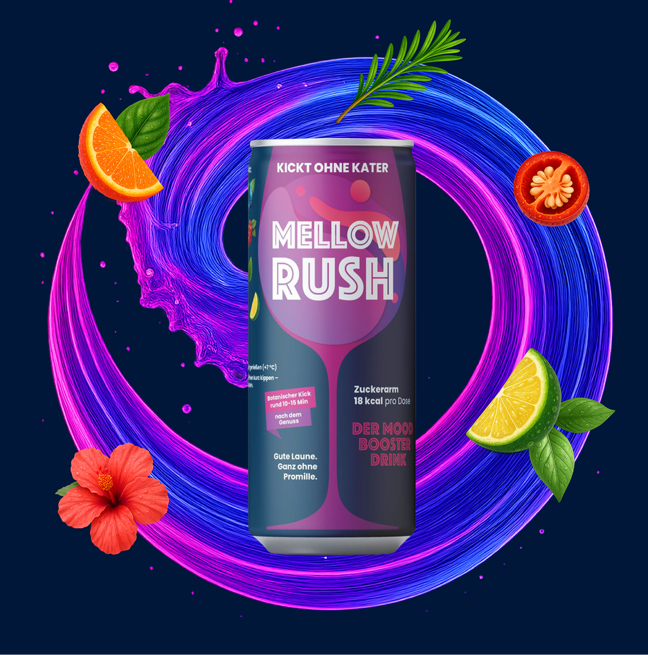 Mellow Rush ist ein funktionales Getränk der nächsten Generation, das wirkt wie Alkohol – nur besser.